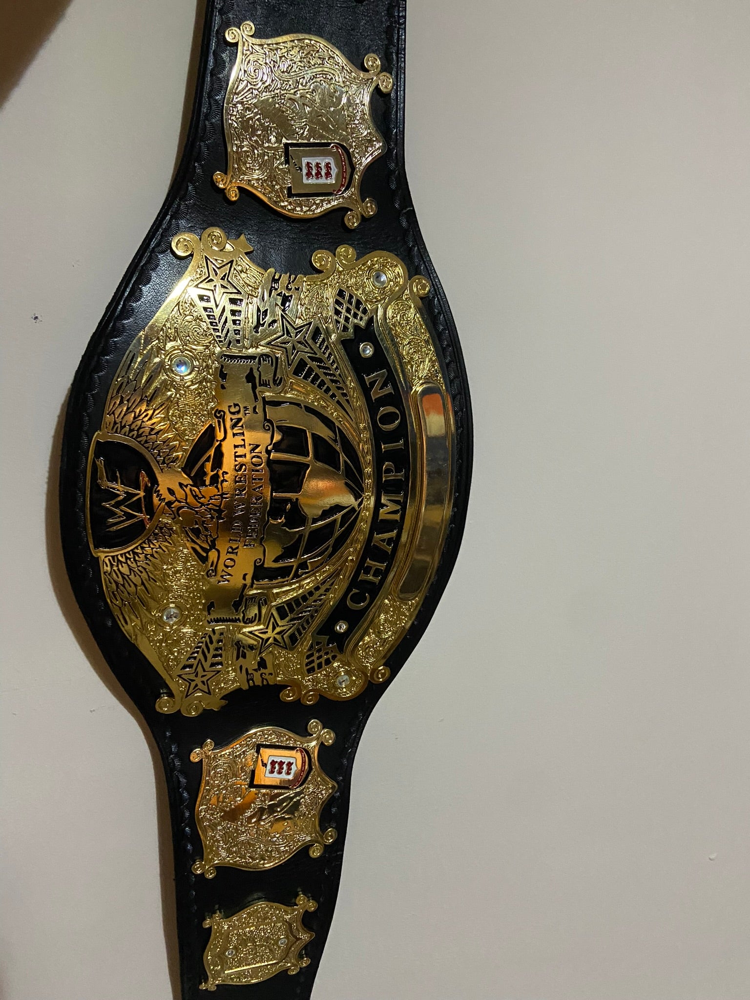 Designed by tattoo artist Keith Ciaramello, the Undisputed Championship belt featured a prominent gold centre plate with a globe at its core, signifying the global reach of the title. An eagle perched atop the globe, with stars emanating from it, added to the belt's grandeur. The original version bore the WWF scratch logo and the inscription "World Wrestling Federation Champion.