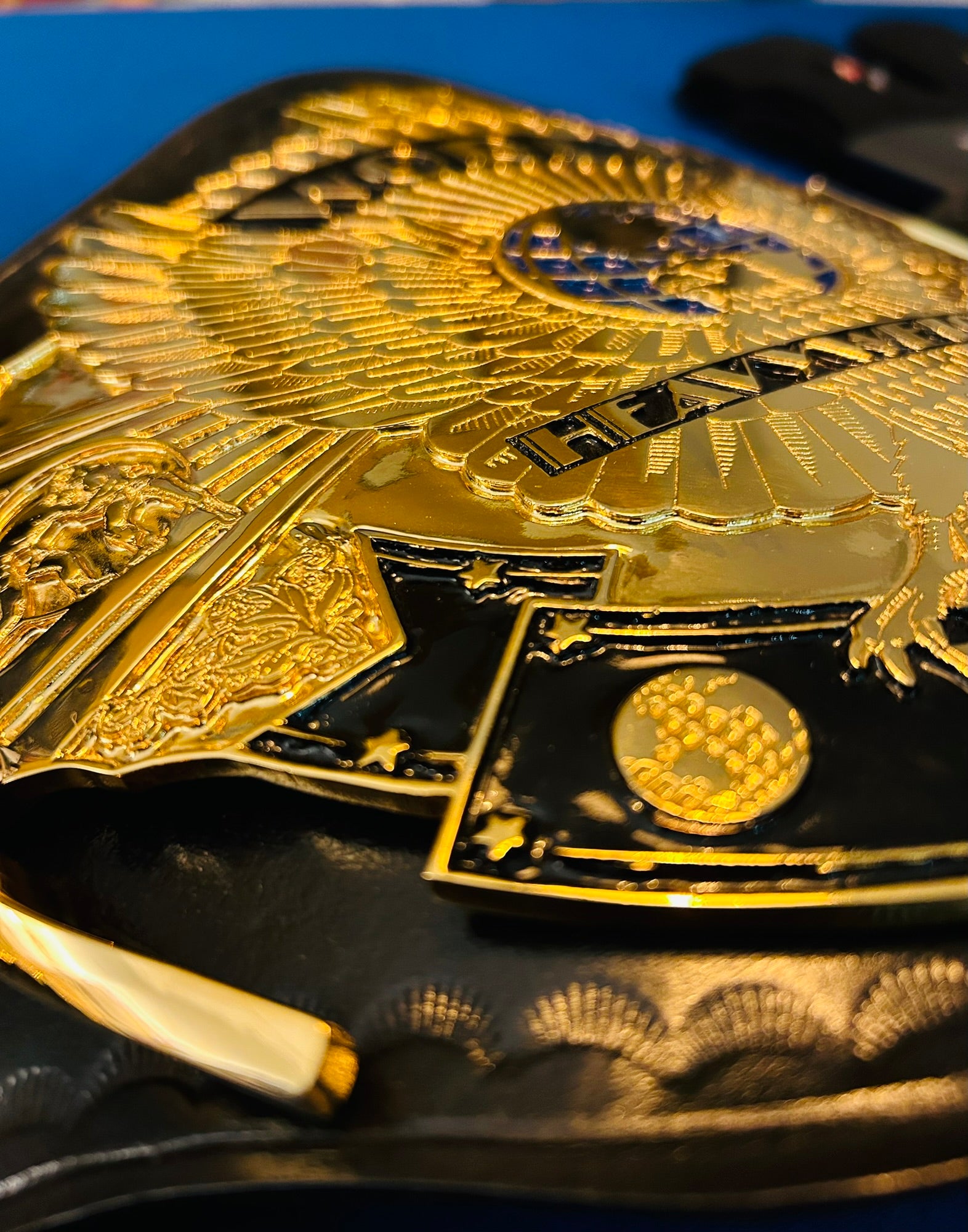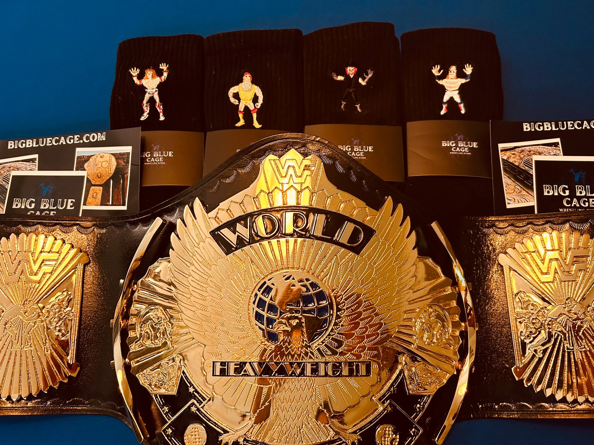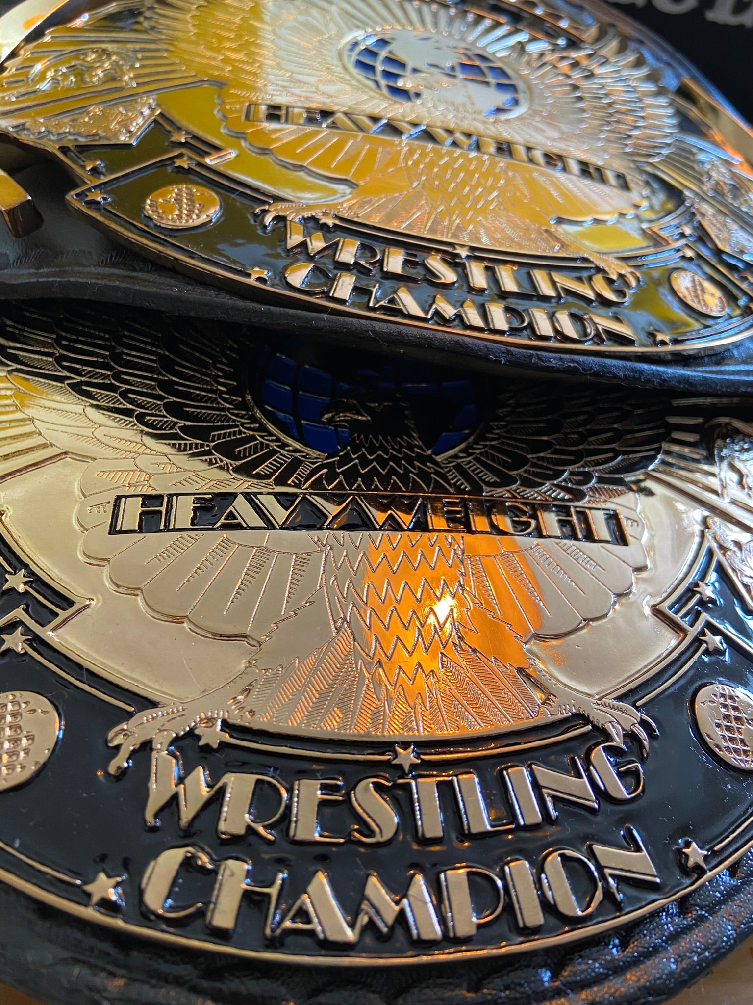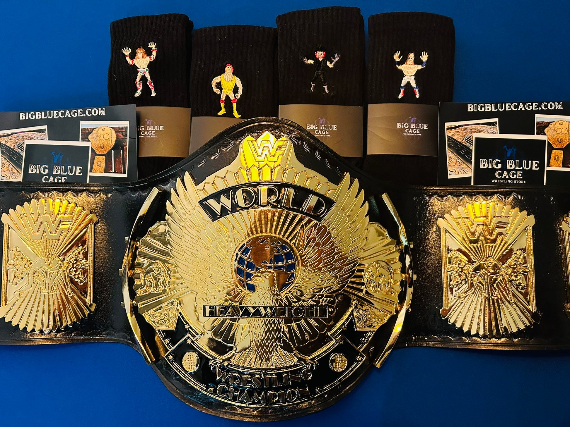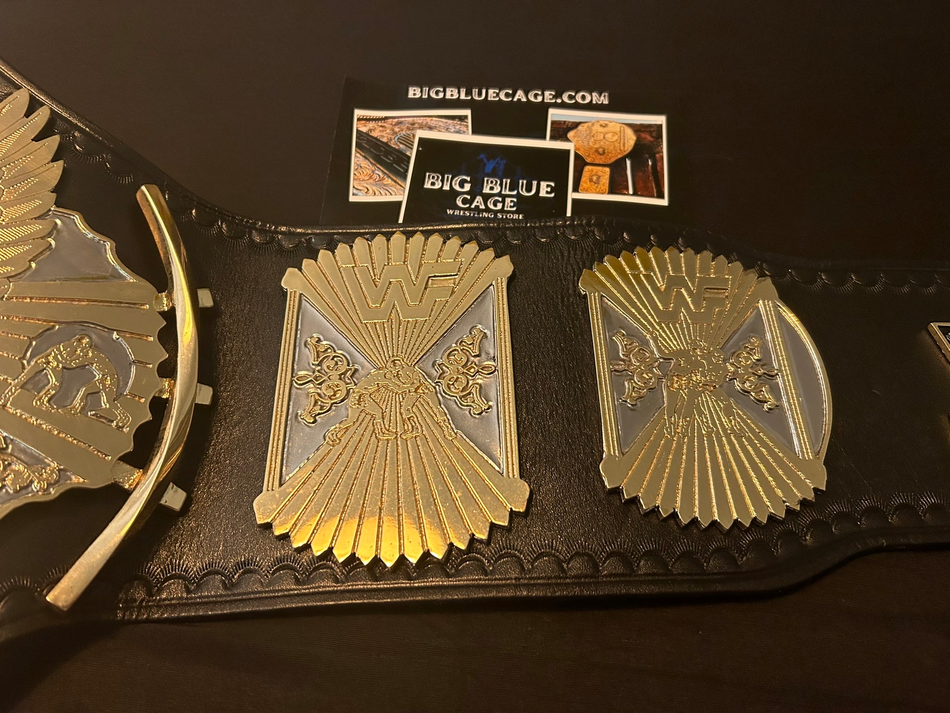 The Winged Eagle championship belt, introduced by the WWF (now WWE) in February 1988, is one of the most iconic and beloved designs in professional wrestling history. Its name comes from the prominent eagle with outstretched wings that appears to soar from the center plate, symbolizing prestige and global reach. The belt features the classic WWF block logo.