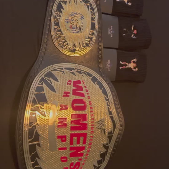 Central Plate: The belt featured a prominent gold oval centre plate with the inscription "Women's Champion" in bold red letters. Above the text, the WWF logo was displayed, which was later replaced by the WWE logo following the company's rebranding in 2002.